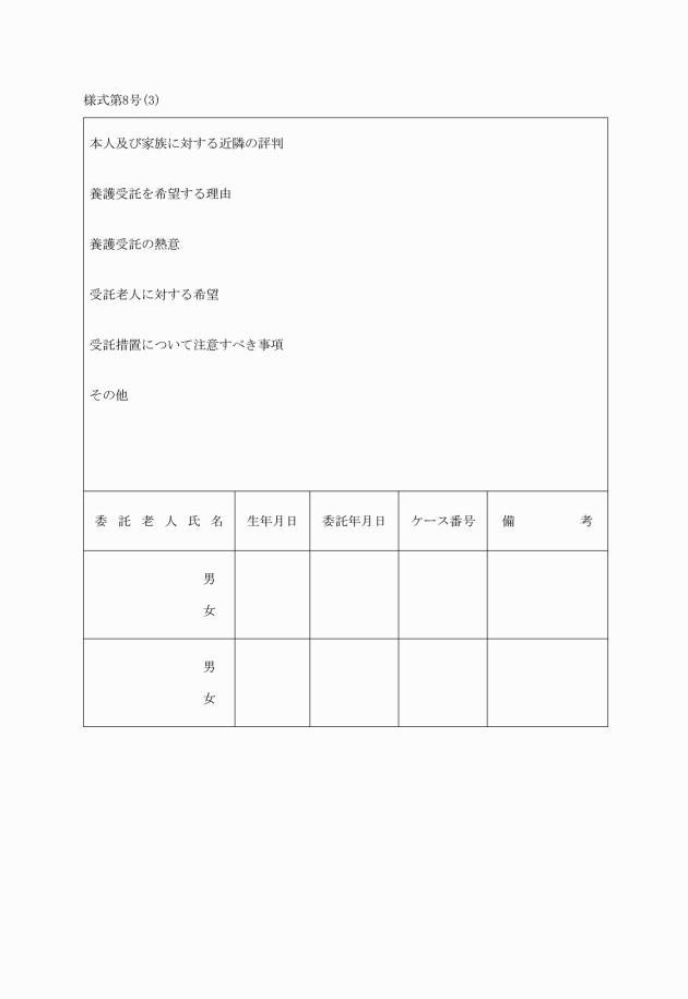 第10条 老人ホームの長又は養護受託者は、毎月分の措置費について、翌月の7日までに老人福祉法措置費精算書(様式第26号)により、当該措置をとった村長に報告しなければならない。