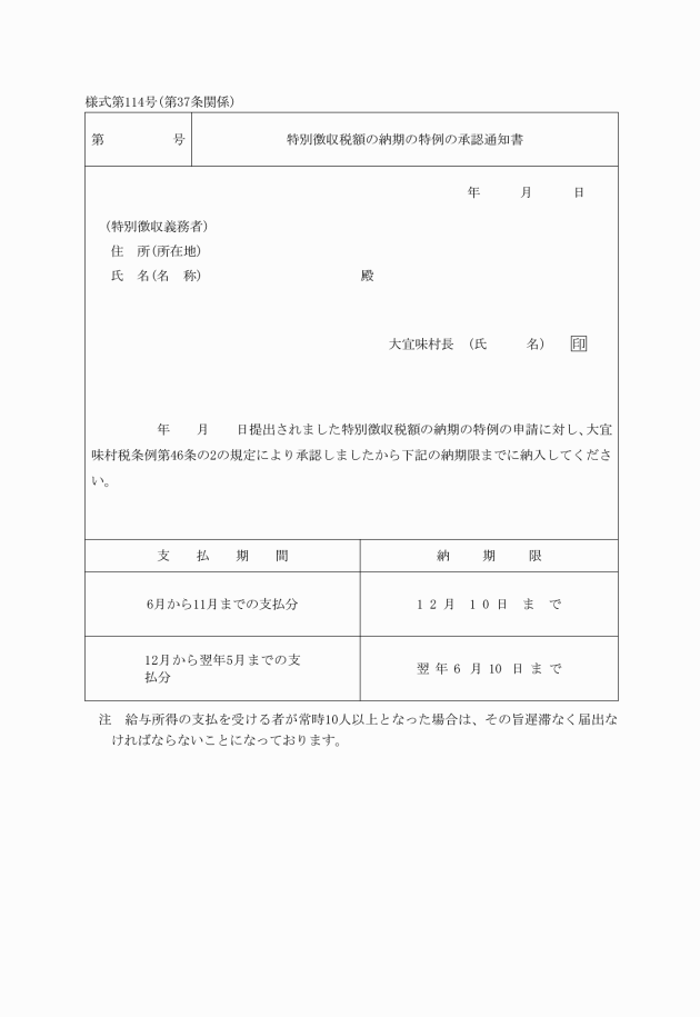 3 村長は、法第15条第4項の規定により徴収猶予又は期間の延長を認めた場合は徴収猶予(期間の延長)承認通知書により、認めない場合は徴収猶予(期間の延長)不承認通知書によりその旨を当該申請者に通知しなければならない。
