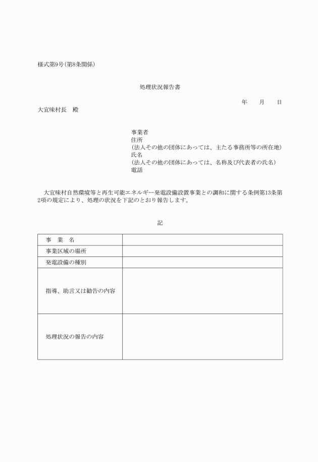 ○大宜味村自然環境等と再生可能エネルギー発電設備設置事業との調和に関する条例施行規則