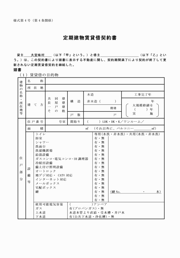○大宜味村移住定住促進住宅の設置及び管理に関する条例施行規則