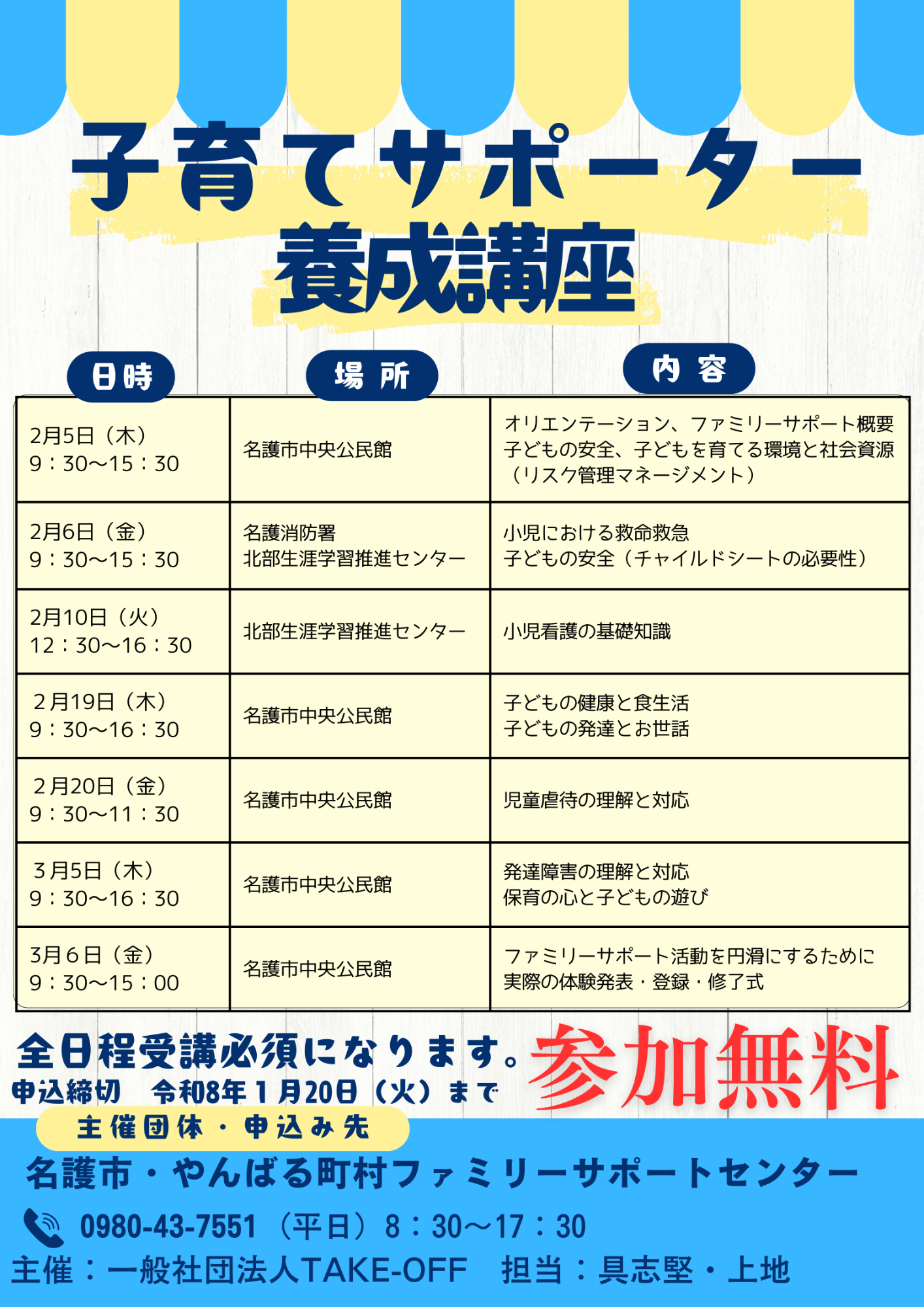 お問い合わせ先: やんばる町村ファミリーセンター(電話:0980-43-7551)